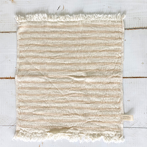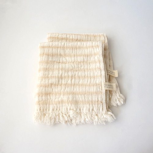手紡ぎ風の糸で、ふっくらしわの風合いのある、ガーゼとパイルを二重織にした肌触りがやさしいタオルです。