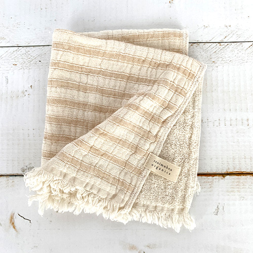 しわの風合いのあり、ガーゼとパイルを二重織にした肌触りがやさしいタオルです。