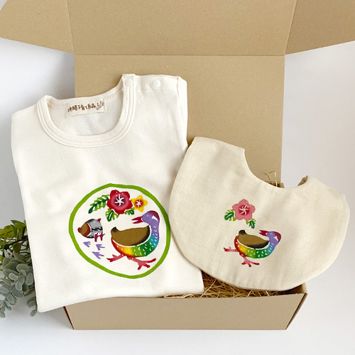 出産祝いギフトセット 紅型ロンパース(80サイズ)・紅型ベビースタイ2点セット 出産祝いや贈り物に[箱ラッピング付き]]
