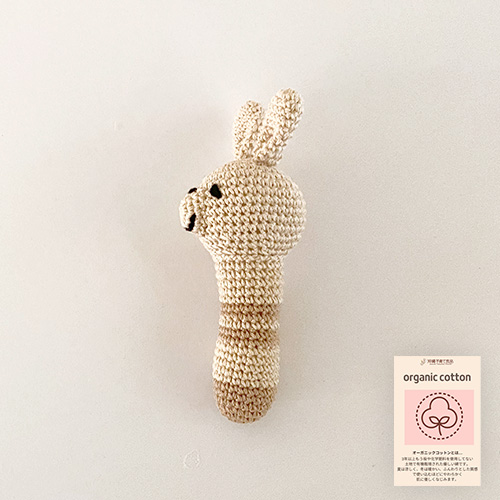 オーガニックコットン100%の糸を使用しており、赤ちゃんがお口に入れても安心です。
