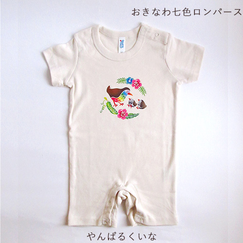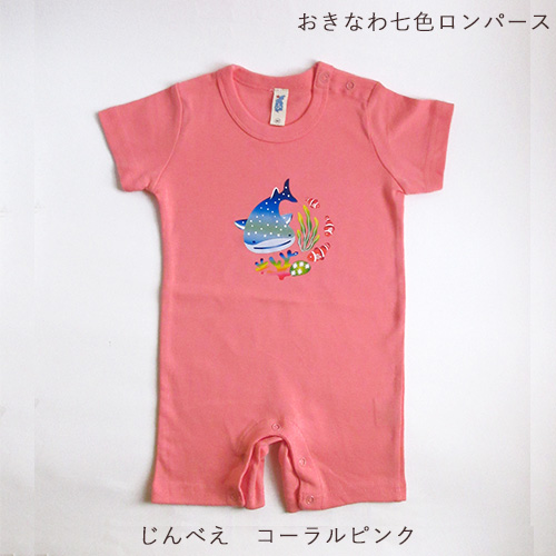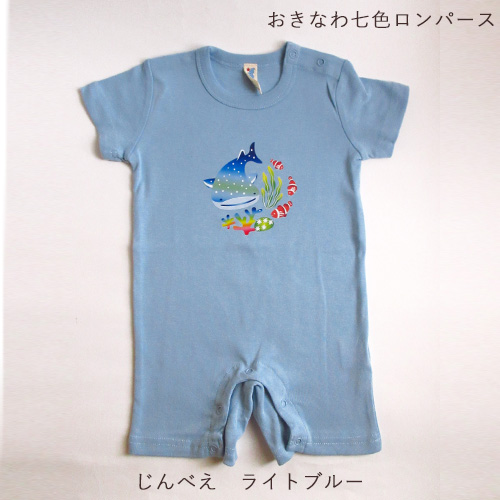 おきなわ七色ロンパース|紅型風プリント|80サイズ|じんべえざめ|やんばるくいな
